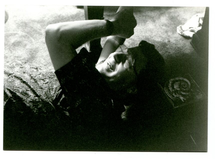 Turns out the piano mover hadn't set this one leg properly, so Rick was fixing it. For some reason it was funny.